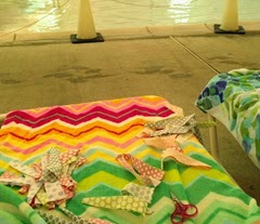 In between handing out snacks, switching out goggles & toys nonstop , and taking one-kid-at-a-time to the disgusting lovely bathroom facilities every ten minutes, cut apart your wedges from your long chain and turn them right side out. A chopstick or stylus comes in handy for poking out the pointy part, gently of course.